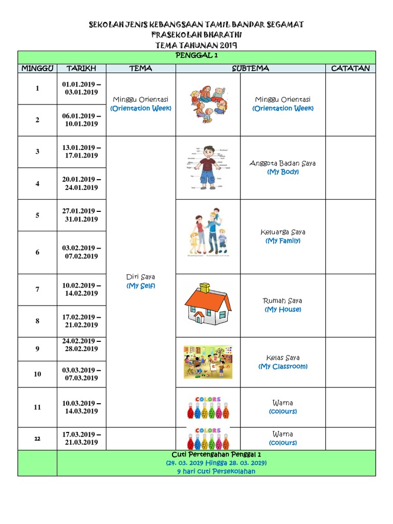 Tema Takwim Tahunan Prasekolah 2019 Pdf
